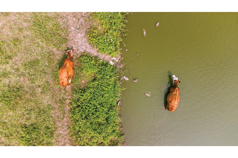 A group of three cows is called a herd. But what about a pair of two cows, walking side by side, one on land and one in the water, together yet still apart? For photographer Parker Bradlee, the word that came to mind was “buds.” The artful framing of the shot captured judges’ attention and admiration. The photograph is “enhanced by the symmetric composition, made subtly asymmetric by the 50/50 split of land and water and the diagonal dirt path visually connecting the two cows,” one judge explained.