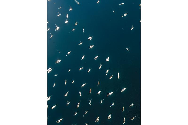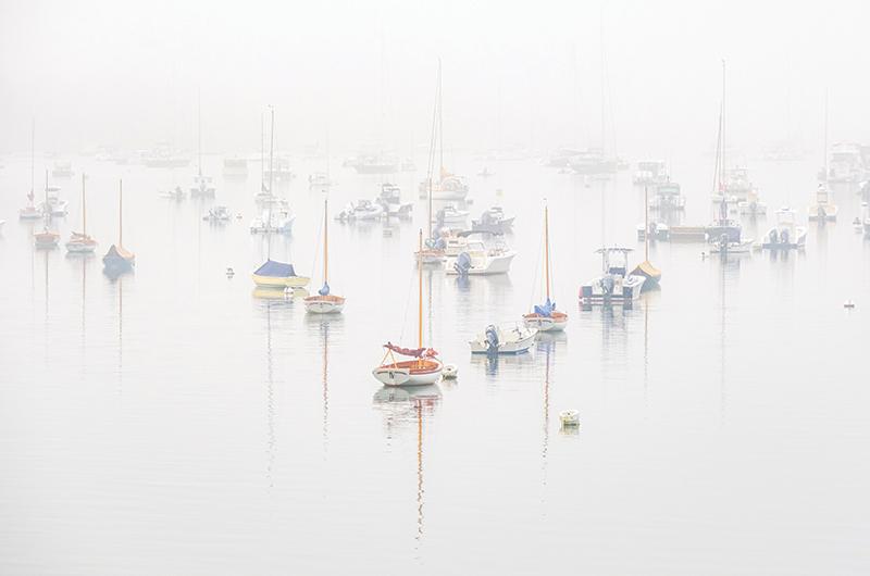 Jon Cohan set out for a morning of fishing on Chappy. Although he failed to get a bite, he did walk away with this haunting image – his second win in this year’s competition. “Great inverted triangular composition, with the foreground Herreshoff positioned dead-center in the frame,” said one judge. “The high view helps provide separation between the dozens of boats. And the foggy, nearly-white negative space top and bottom frame the overall scene beautifully.”